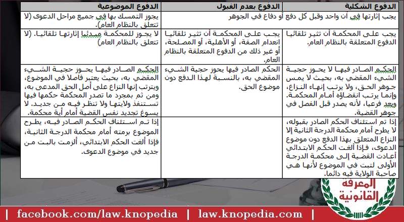 الدفوع الشكلية والدفوع الموضوعية والدفوع بعدم القبول